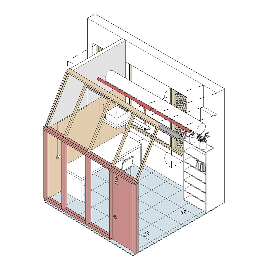 An affordable, self build workspace solution in open plan ground floor commercial units. We collaborated with SpaceCraft to refine a panel based system which anyone could build using simple tools and simple sheet materials. Go to: http://www.spaceform.space