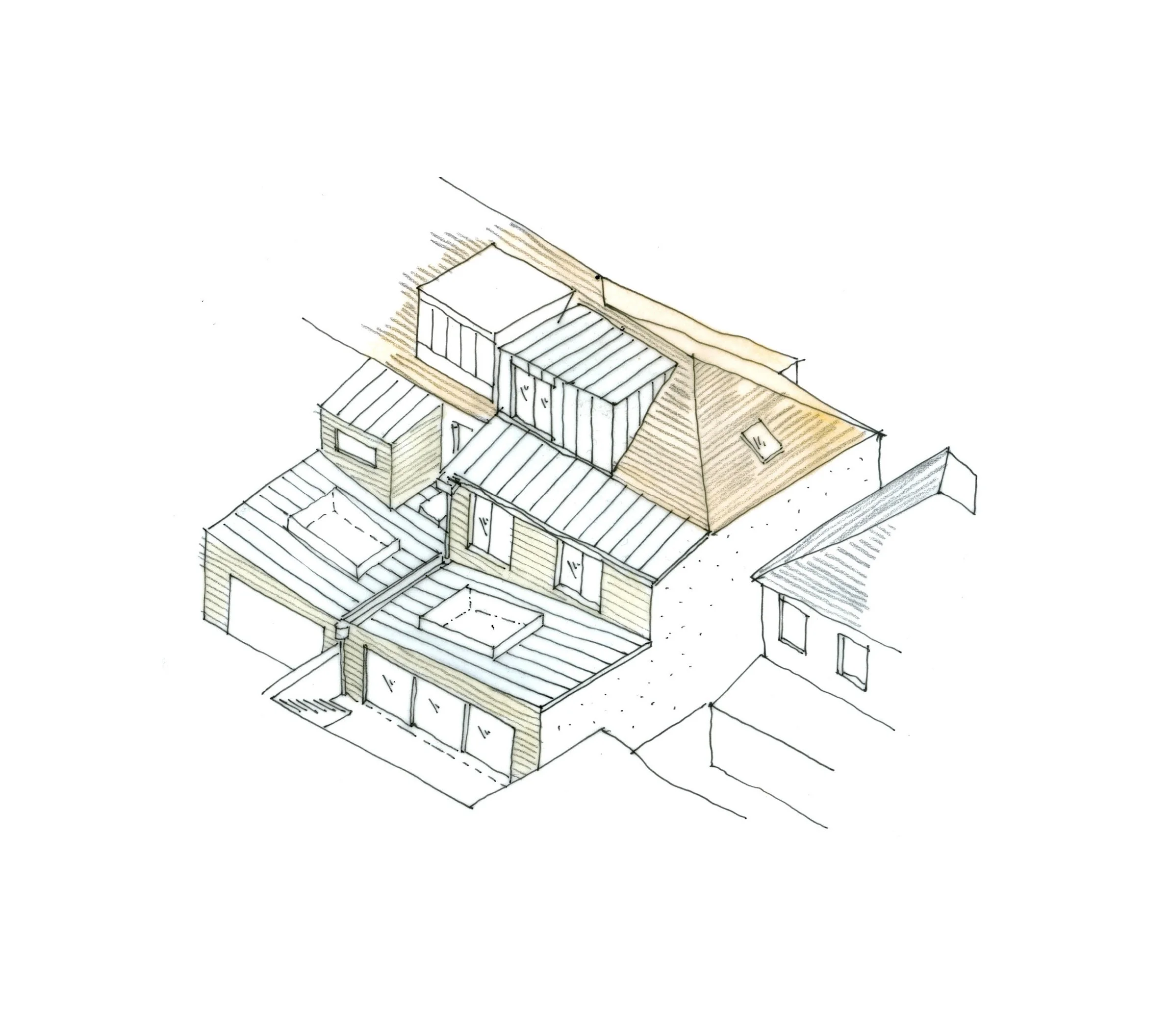 A house extension at the south of the city centre, creating a generous family home out of a thin semi detached pebble dashed 1930s house.