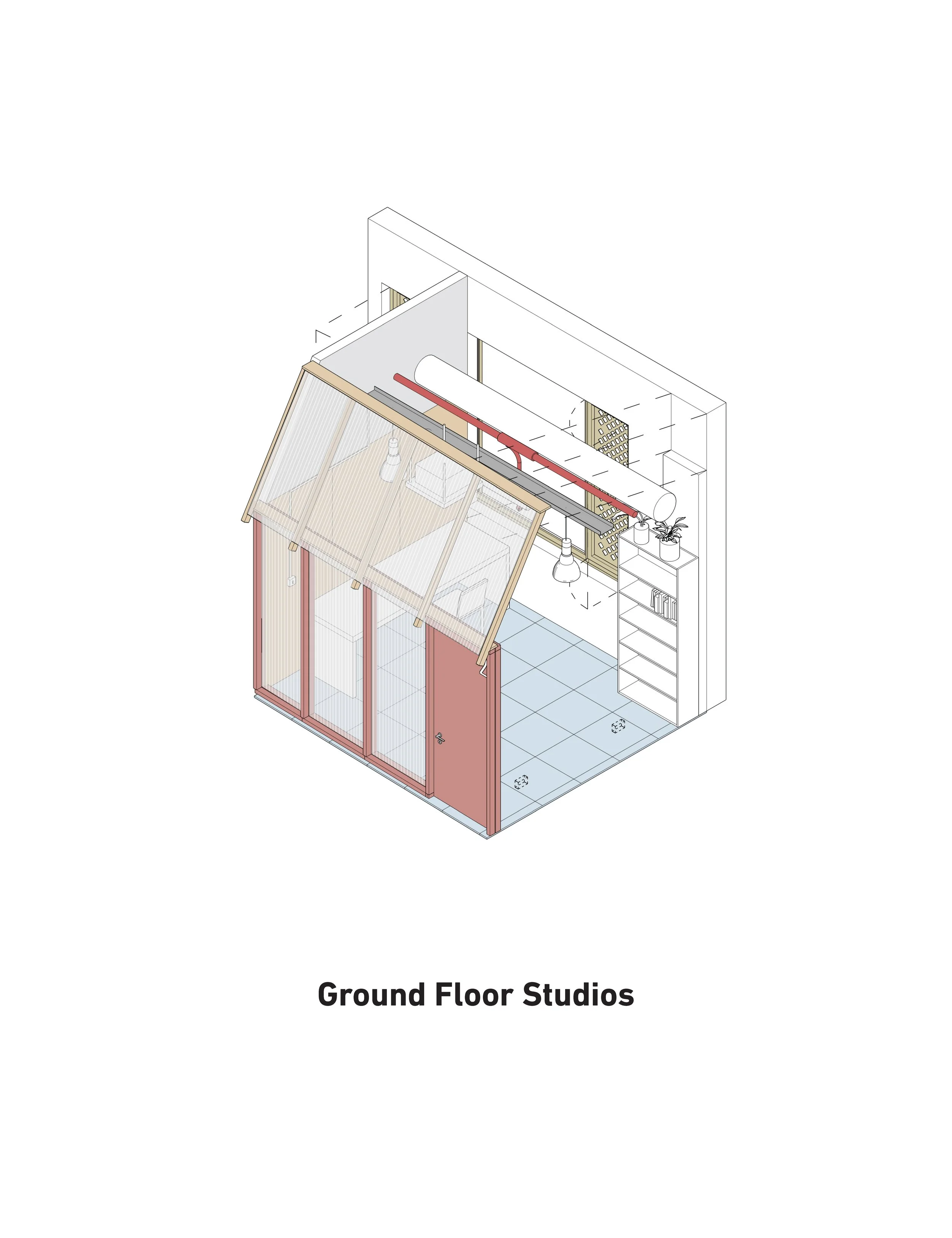 The architectural concept is centred around visibility, interaction, and adaptability—encouraging serendipitous encounters and shared experiences, while also supporting focused, productive work. A series of translucent partition systems define micro studio units, creating a series of light-filled islands interspersed with communal corridors, desk areas, and support facilities.