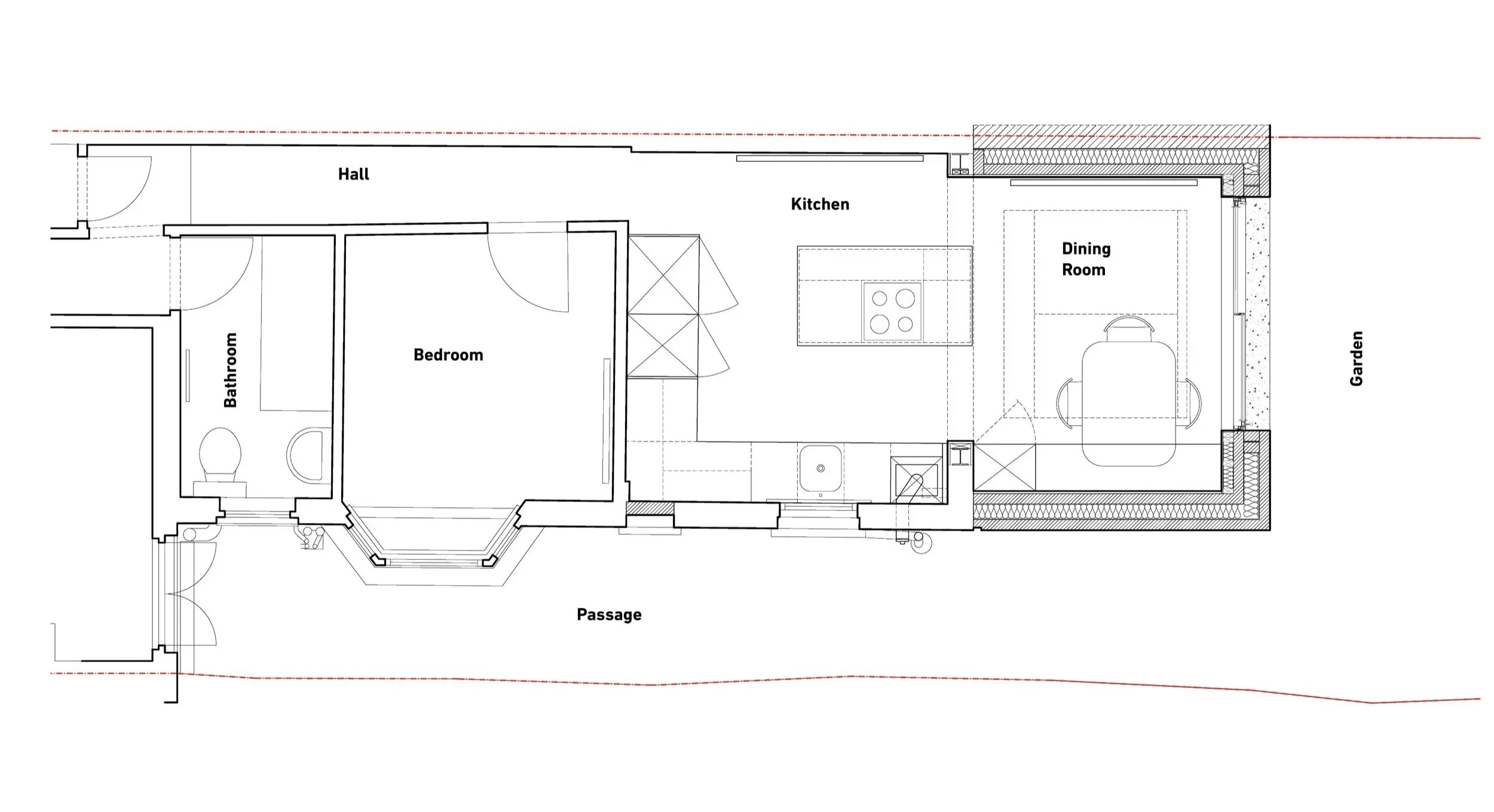 A modest rear extension to a ground floor flat in Haringey, extending just a few metres to unlock a better kitchen layout, improved daylight, and stronger garden connection. Handmade bricks and stepped precast concrete lintels frame elegant sliding doors, adding texture and quiet character.